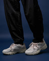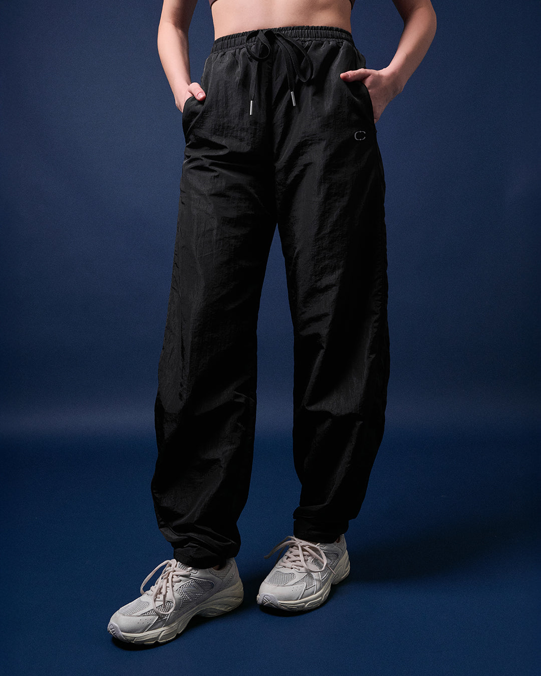DESIGN: UNISEX BARREL PANTS WITH BARREL SHAPED SILHOUETTE, RELAXED HEM FOR COMFORT WHILE MOVING, ADJUSTABLE DRAWSTRING WAIST, FRONT POCKETS, DOUBLE SIDE PIPING FOR SHAPING AND DESIGN, SMALL REFLECTIVE CAKENIS LOGO AT FRONT, RELAXED FIT.