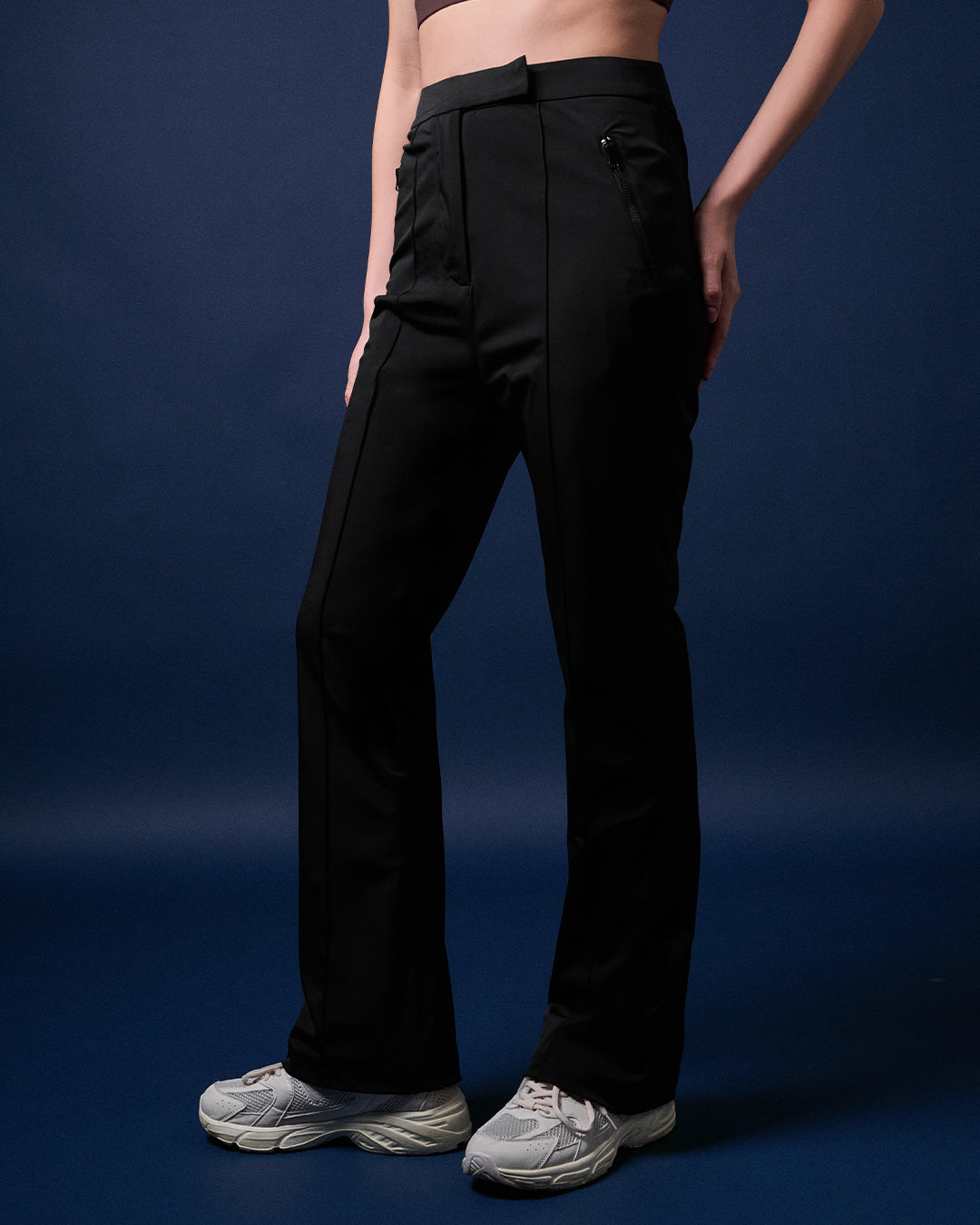 BOOTCUT PANTS FOR YOUR SPORTY ADVENTURES, DESIGNED FOR A SLEEK AND SEAMLESS LOOK. FEATURING A FRONT ZIPPER POCKET WITH SNAP-BUTTON CLOSURE FOR SECURE STORAGE AND A BACK POCKET FOR ADDED FUNCTIONALITY, THEY COMBINE PRACTICALITY WITH CLEAN LINES. THE BOOTCUT CUTTING ALLOWS FOR EASY MOVEMENT WHILE MAINTAINING A FLATTERING SILHOUETTE, MAKING THESE PANTS PERFECT FOR EVERYDAY WEAR WITH BOTH STYLE AND COMFORT.