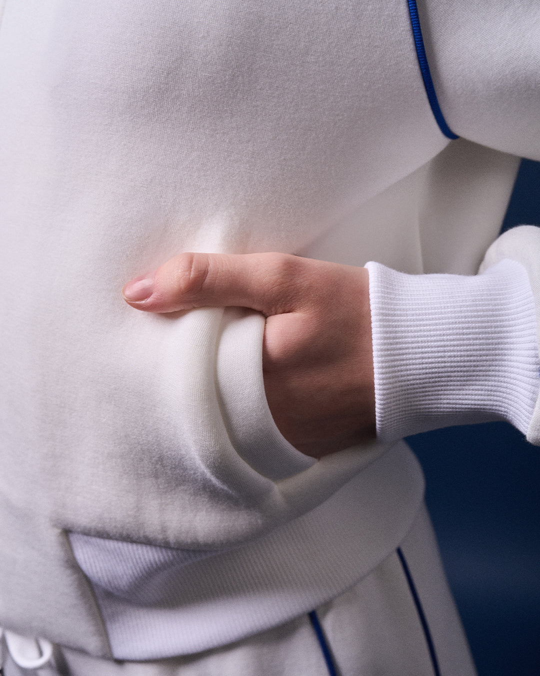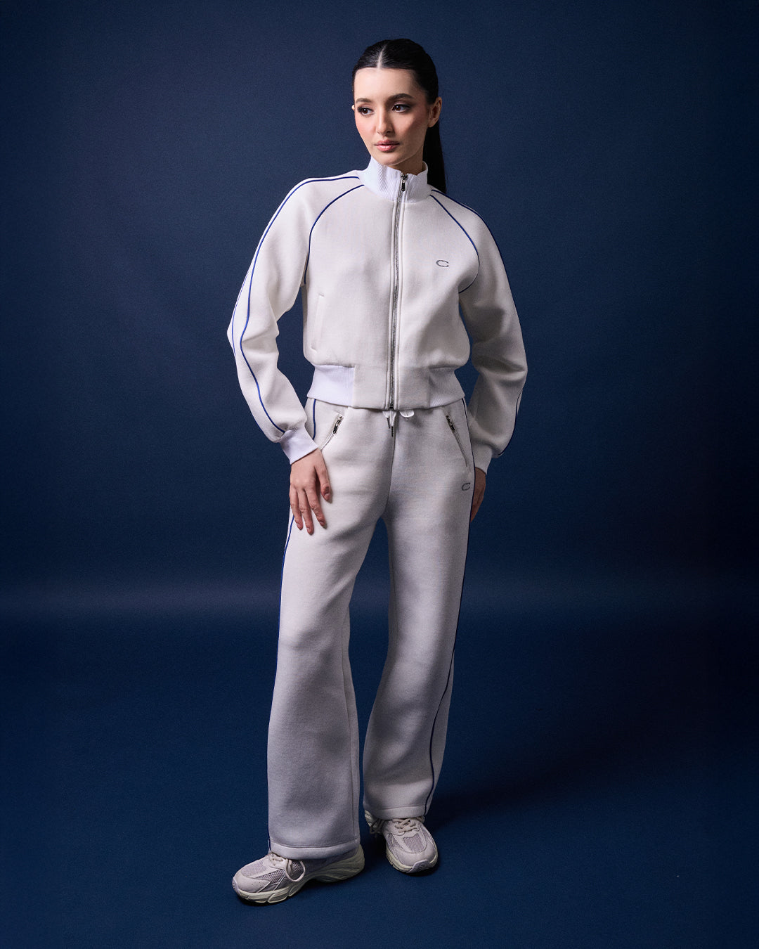 EFFORTLESSLY STYLISH AND EASY TO WEAR, THIS TWO-PIECE SET INCLUDES A CROPPED JACKET WITH AN ELASTIC WAIST, DRAWSTRING, AND RELAXED HEMS FOR A SPORTY LOOK. DESIGNED WITH FUNCTIONAL POCKETS ON BOTH THE TOP AND BOTTOM, IT’S MADE FROM OUR LIGHTWEIGHT, BREATHABLE CAKENIS COOLING COTTON BLEND FOR ALL-DAY COMFORT.