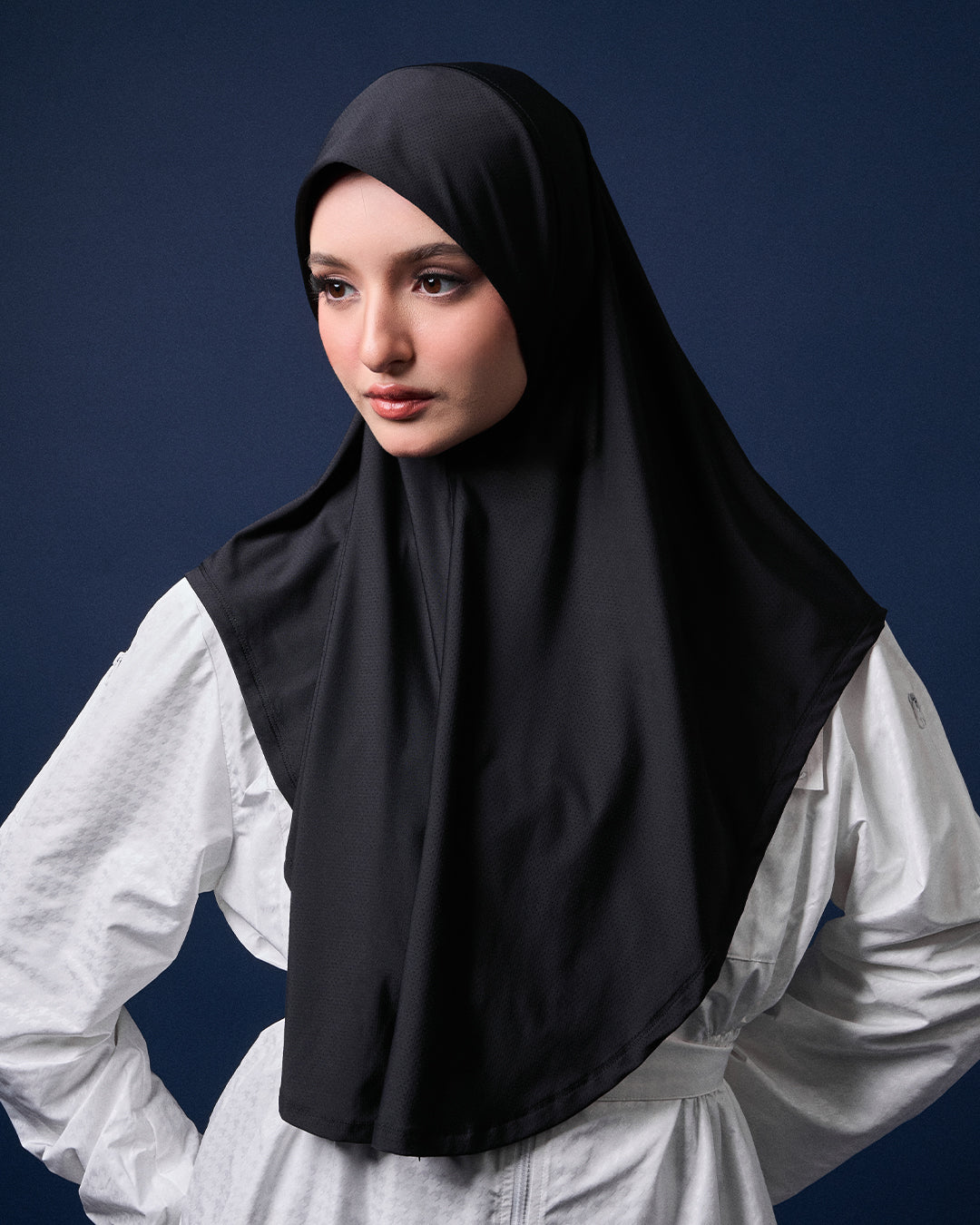 THE CAKENIS ZIPPER SPEEDY SPORTS HIJAB IS ONE OF OUR BEST INNOVATIONS YET. THE CHEST ZIPPER DESIGN ALLOWS YOU TO TIE IT AT THE BACK FOR MAXIMUM SECURITY DURING DYNAMIC ACTIVITIES, WHILE STILL OFFERING THE OPTION TO LEAVE IT DOWN FOR FULL COVERAGE. IT FEATURES A FRONT HOOK TO ADJUST ACCORDING TO YOUR FACE SIZE, A BACK SNAP BUTTON, AND A SEWN-IN CLIP AT THE TOP OF THE SCARVES TO HOLD HAIR IN PLACE FOR A SPORTY, ADJUSTABLE FIT. STAY COMFORTABLE AND CONFIDENTLY COVERED, NO MATTER YOUR MOVEMENT.