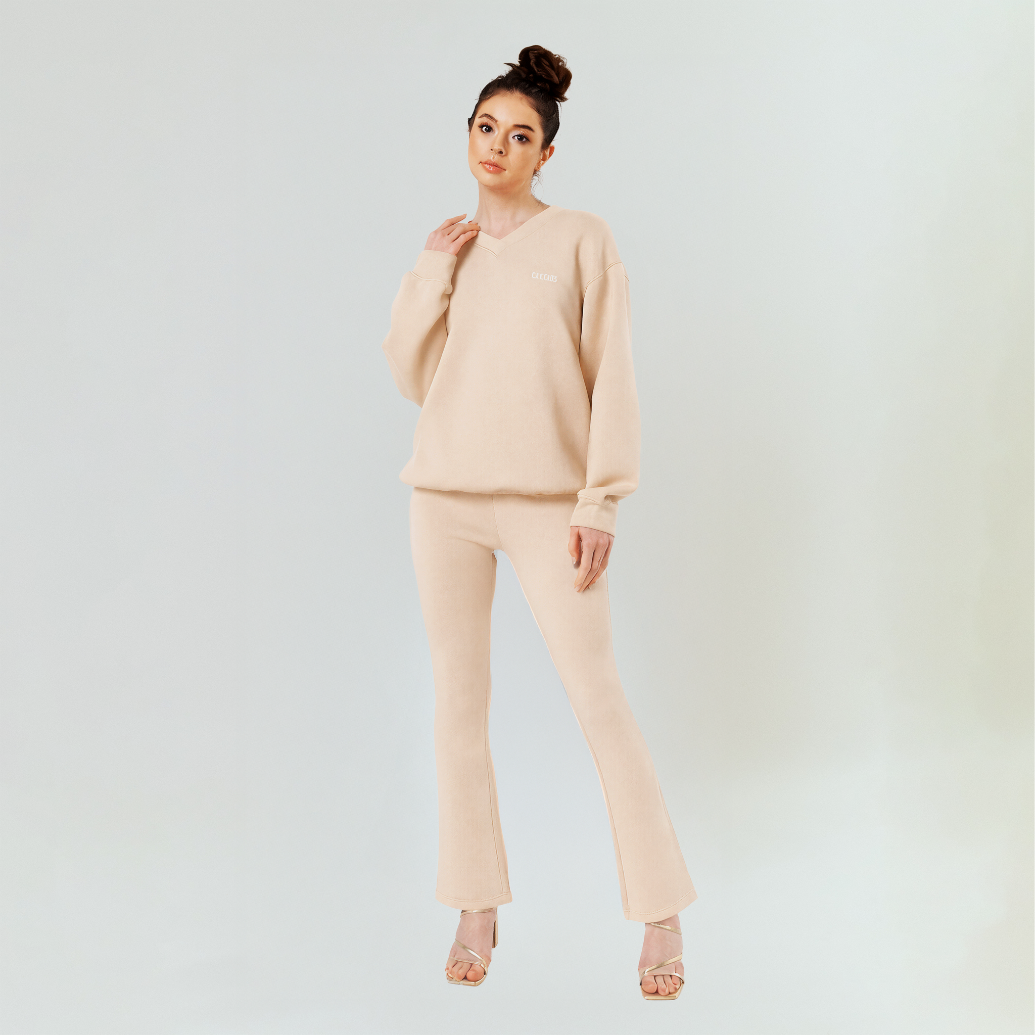 UNWIND IN STYLE WITH THE MOST STYLISH JUMPER SET WITH FLARED PANTS, REGINA JUMPER SET! COOLING MATERIAL. CAKENIS COOLING COTTON BLEND. COMFORTABLE TO BE WORN ALL DAY.