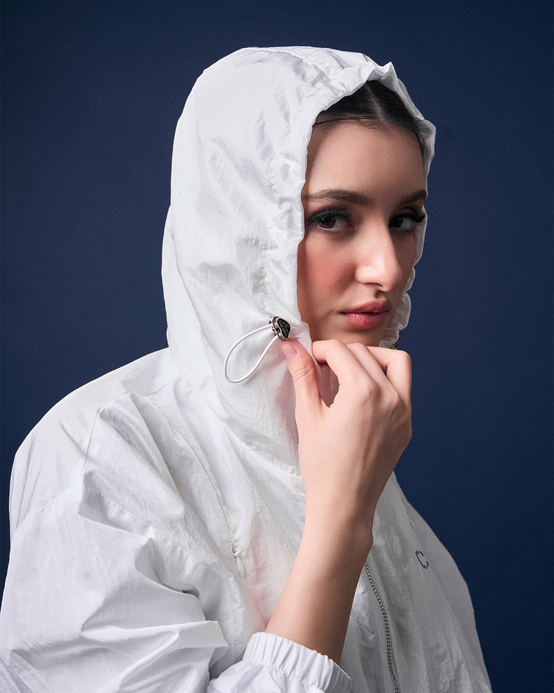 CRUZ BOMBER WINDBREAKER — A UNISEX GO-TO OUTERWEAR FOR UNPREDICTABLE WEATHER AND EFFORTLESS STYLE. MADE WATER-RESISTANT TO KEEP YOU DRY WITH NO VISIBLE SWEAT STAINS, IT FEATURES A DOUBLE-LINED HOODIE THAT PROTECTS YOUR HAIR FROM THE RAIN, WITH INNER LINING FOR ADDED COMFORT AND TO PREVENT SWEAT FROM STICKING. THE FRONT COMES WITH FOUR FUNCTIONAL POCKETS — ZIPPED AND SPACIOUS FOR YOUR EVERYDAY CARRY. DESIGNED WITH TWO WAIST DRAWSTRINGS ON EACH SIDE FOR A SUPER-CROPPED, CUSTOMISABLE SILHOUETTE, FINISHED WITH THE SIGNATURE CAKENIS METAL DRAWSTRING TOGGLE.
