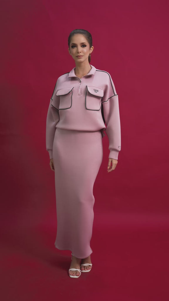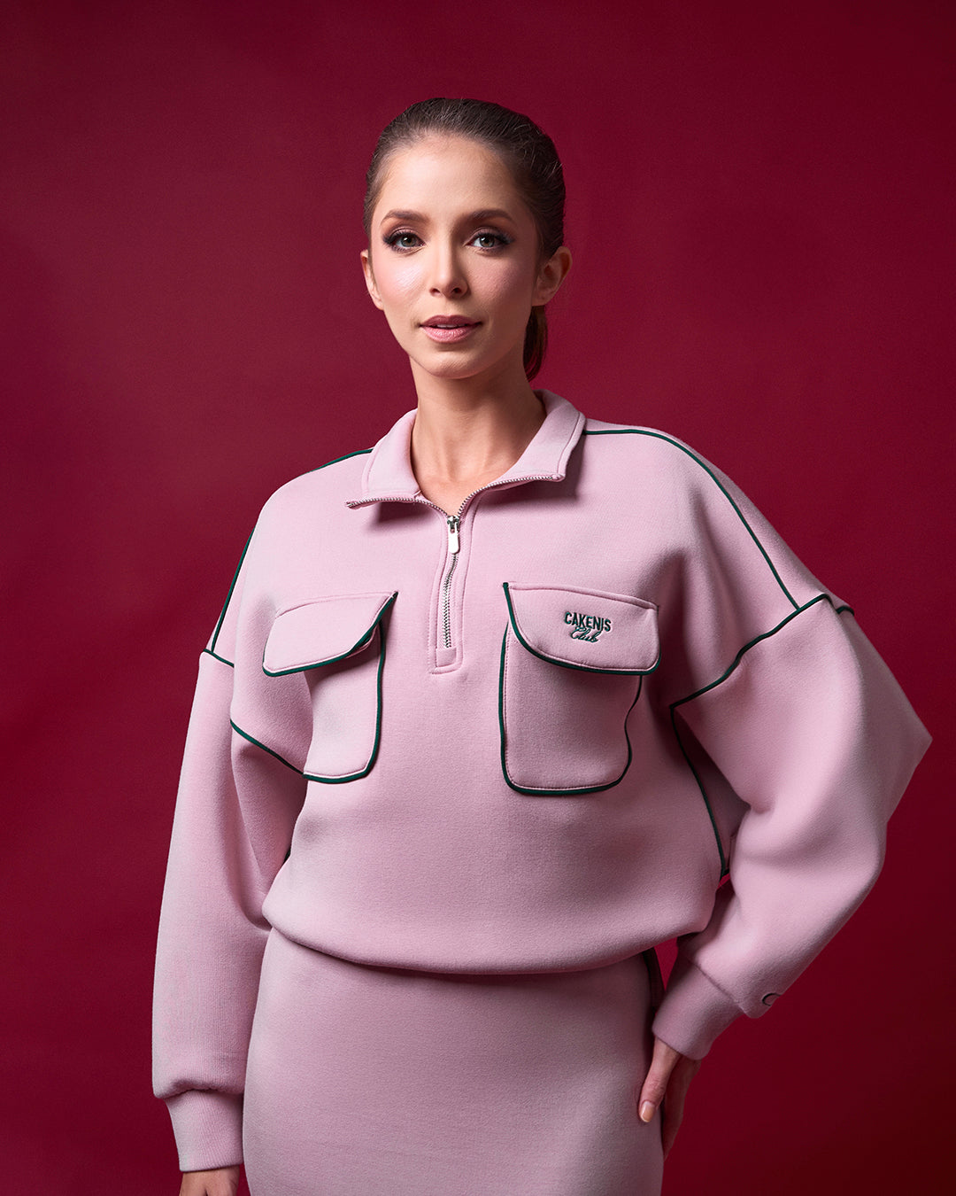 OVERSIZED BATWING ZIP SWEATSHIRT WITH A HIGH NECKLINE AND SIGNATURE CAKENIS ZIPPER FOR VERSATILE WEAR. FEATURES TWO FRONT POCKETS AND COLOR-BLOCK PIPING FOR A SPORTY TOUCH, WITH BOLD EMBROIDERY DETAILING AND A SMALL TAG AT THE BACK. MADE FROM CAKENIS COOLING COTTON BLEND FOR ALL-DAY COMFORT.