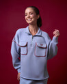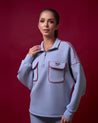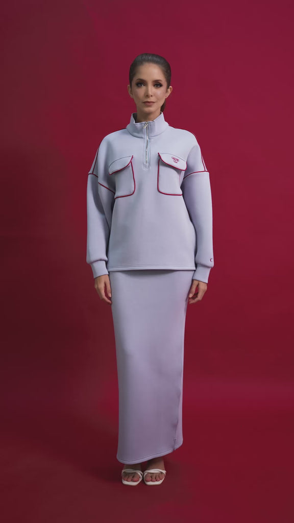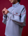 OVERSIZED BATWING ZIP SWEATSHIRT WITH A HIGH NECKLINE AND SIGNATURE CAKENIS ZIPPER FOR VERSATILE WEAR. FEATURES TWO FRONT POCKETS AND COLOR-BLOCK PIPING FOR A SPORTY TOUCH, WITH BOLD EMBROIDERY DETAILING AND A SMALL TAG AT THE BACK. MADE FROM CAKENIS COOLING COTTON BLEND FOR ALL-DAY COMFORT.